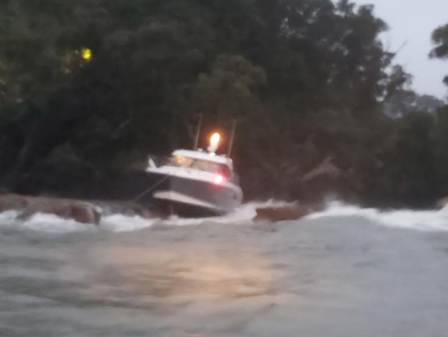 As the boat was very close to rocks and large swells were tossing it around, our options to help seemed very limited. As we were assessing whether we could try to snag the anchor chain and cut it, the launch again was thrown up onto the rocks and spun around.