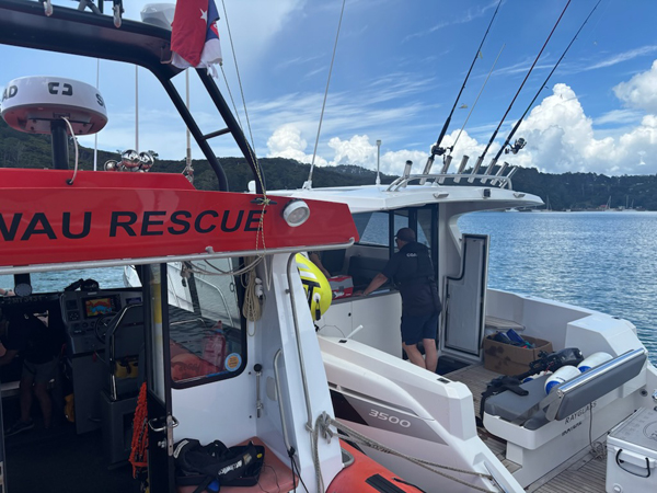 The next job was to 3 young chaps North West of Little Barrier Island who had an oil level sensor issue and the outboard only wanted to run in short bursts. We hooked these gents up for their first experience behind Kawau Rescue for a 2 hour (ish) tow back to Mahurangi Harbour.