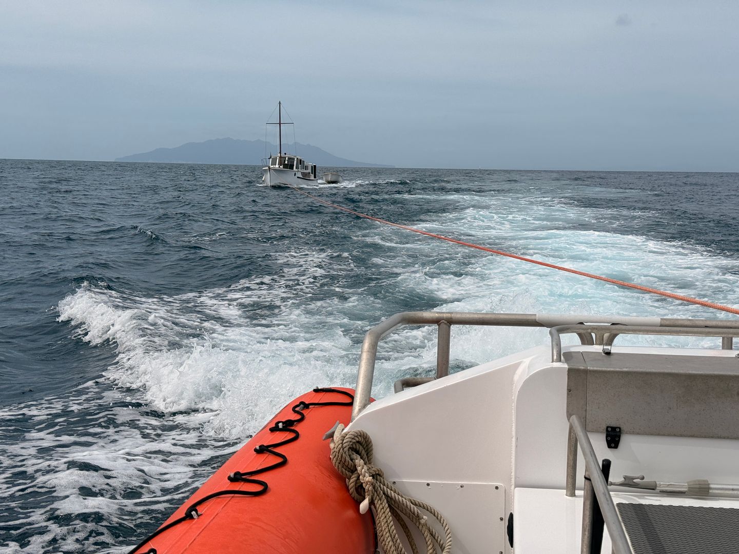 We quickly got him hooked up and towed out towards Sandspit where he had arranged to be hauled out on Friday to get it fixed. All was looking good.